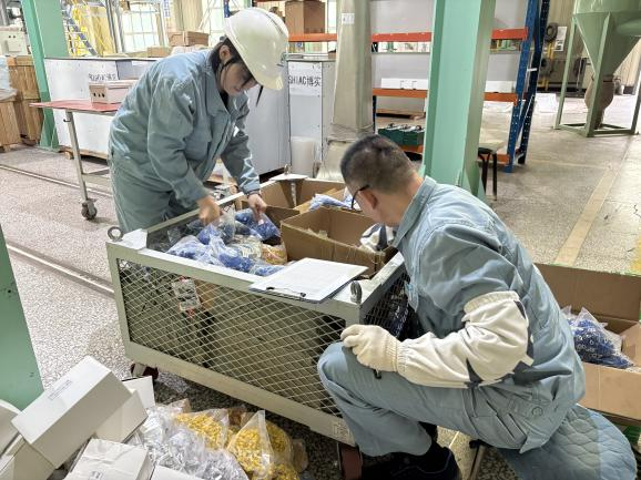任务间隙,他们迅速转换角色,俯身专注地协助综合组完成地线剪裁、压接等辅材制作,有效缩短生产辅材制作时间,提升生产效率;同时,密切配合6S管理人员将新进物资按型号、用途细致分类摆放,缩短了后续物资取用时间,让生产流程更顺畅。此外,吊叉组成员主动分担热塑管分类、剪裁等任务——他们深知,这些看似简单的工作,正是保障后续生产有序开展的关键。这些点滴行动,不仅推动了生产流程的优化升级,更让团队协作精神具象化:集体力量在分工与互补中迸发,既有锐意进取的效率,亦含温暖互助的温度。
