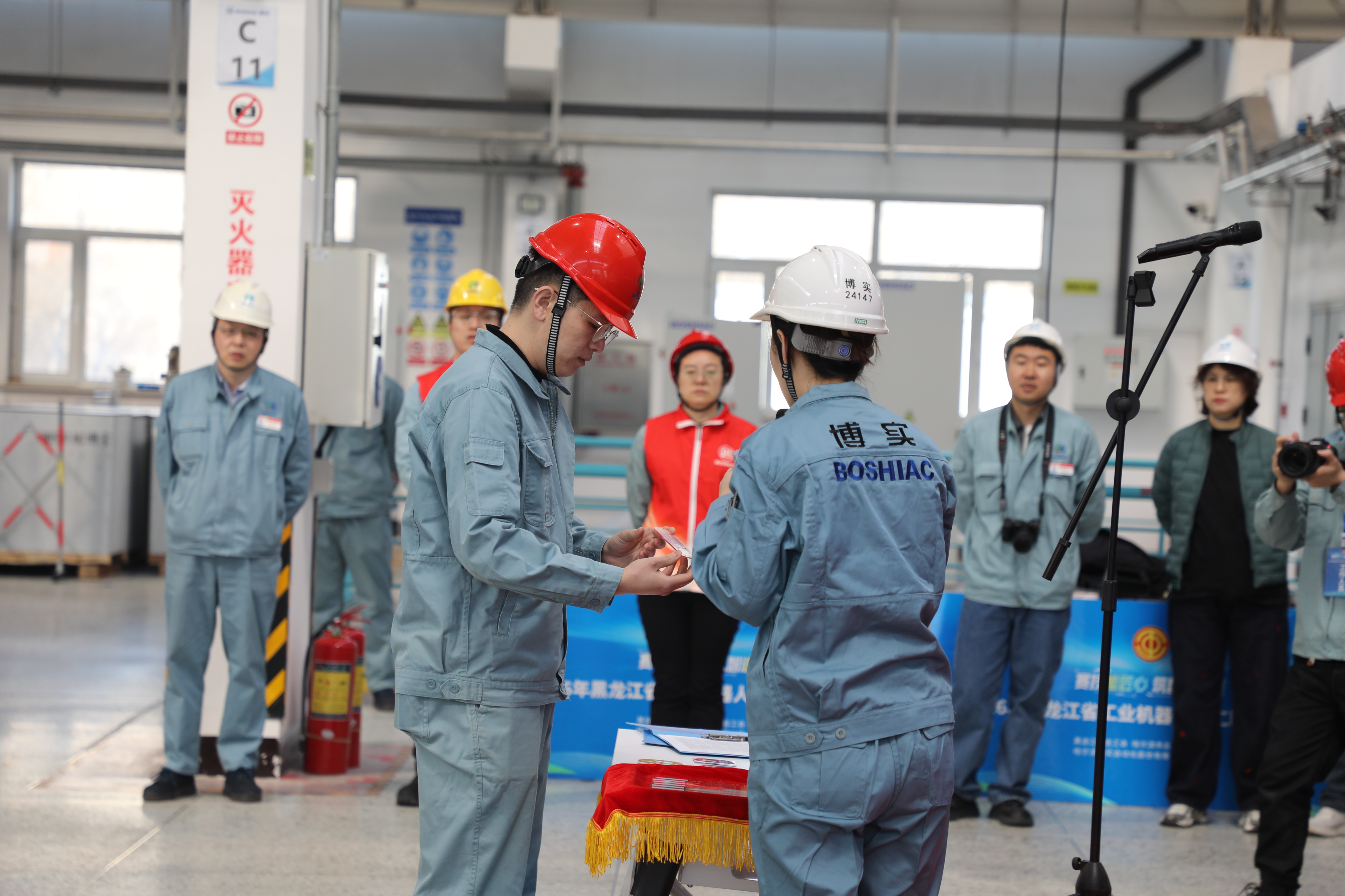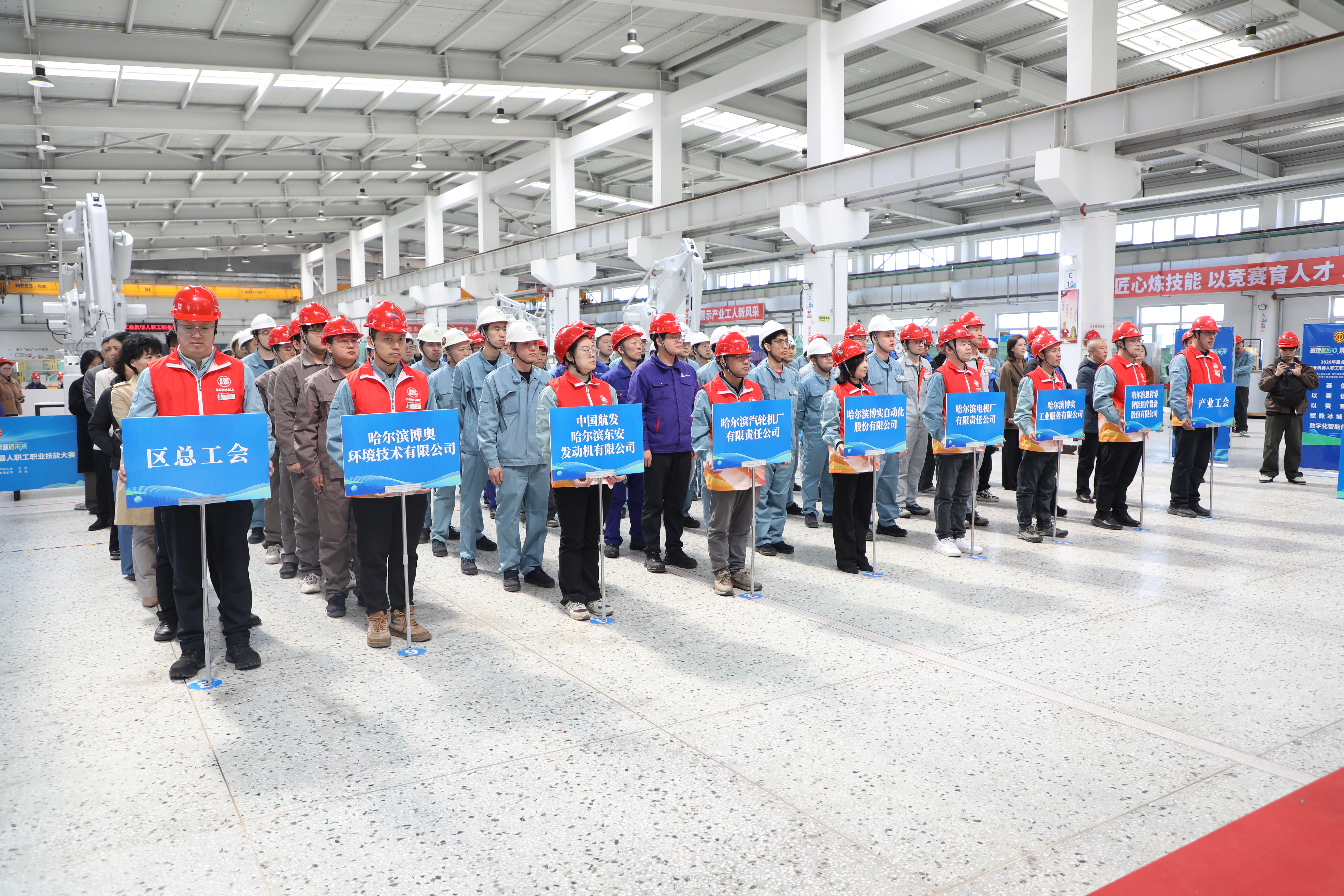 比赛当天开始前,大赛组委会组织完成参赛队伍抽签仪式,抽签过程全程公开、公平、公正,接受现场监督,确保赛事竞赛环节有序、规范推进。本次参赛队伍涵盖哈尔滨博实自动化股份有限公司、哈尔滨博实工业服务有限公司、哈尔滨博奥环境技术有限公司、哈尔滨电机厂有限责任公司、哈尔滨汽轮机厂有限责任公司及中国航发哈尔滨东安发动机有限公司多支队伍。