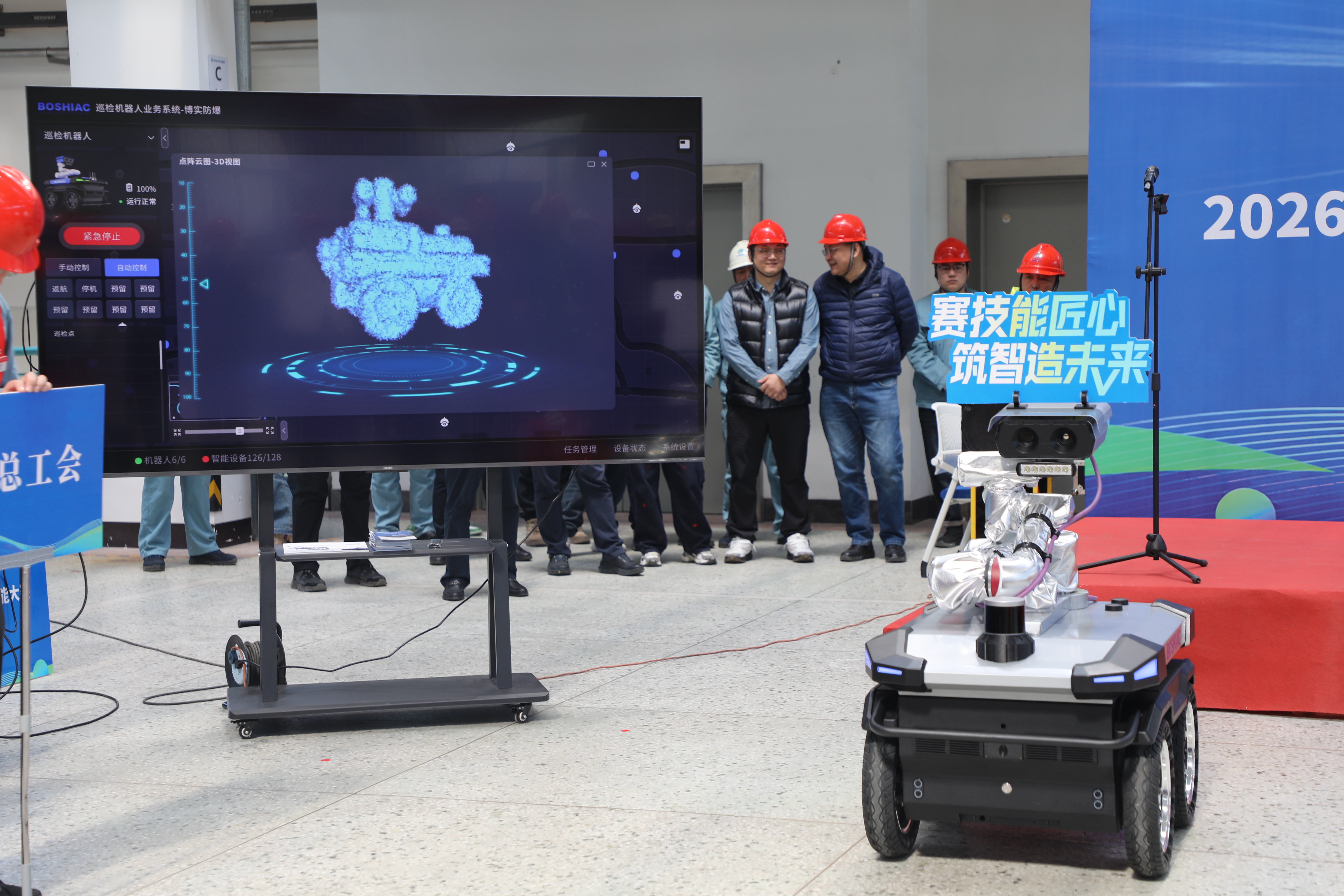 开幕仪式后,博实巡检机器人精彩亮相,进行现场表演,灵活的操作、精准的动作充分展现了工业机器人的技术魅力。